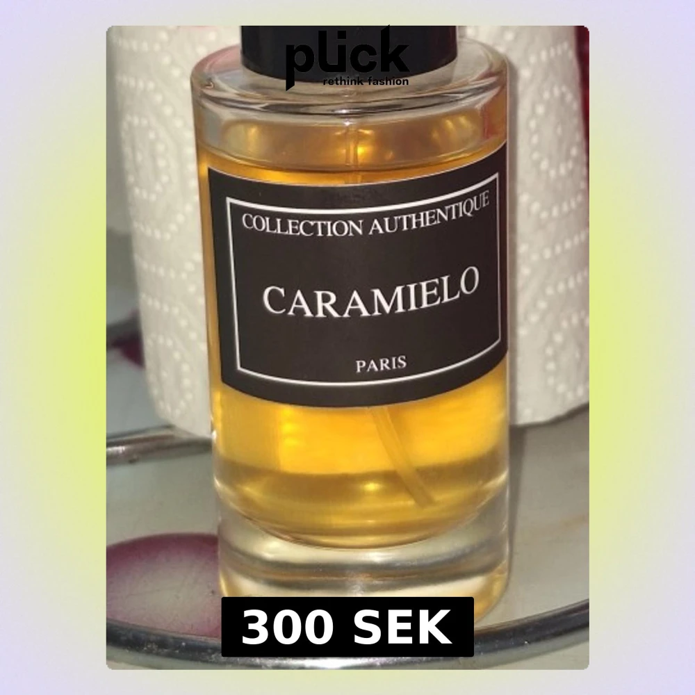 Caramielo från Collection Authentique Paris är en parfym i en rund, transparent glasflaska med svart etikett och svart lock. Vätskan har en gyllene, karamellfärgad ton som ger ett lyxigt intryck. Perfekt för dig som gillar söta och eleganta dofter.