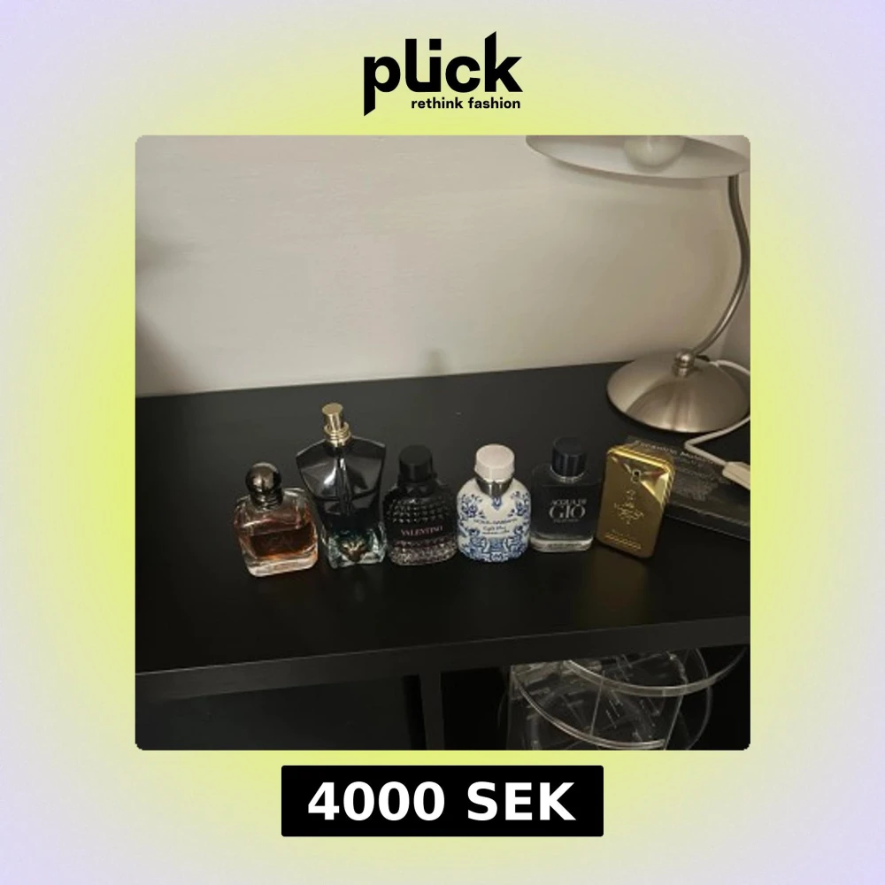 Samling med sex trendiga parfymer från kända märken. Perfekt för dig som vill testa olika dofter och hitta din favorit. Jean Paul Gaultier Lebau (70ml) Emporio Armani Stronger With You (41ml) Valentino born in Roma intense (45ml) Dolce Gabbana light blue summervibe (35ml) ACQUA DI GIO PROFONDO (45ml) 1 MILLION (40ml
