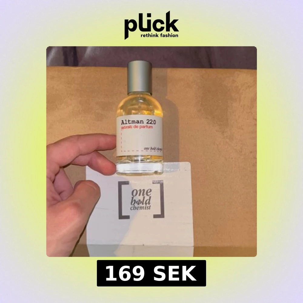 Altman 220 är en exklusiv extrait de parfum från One Bold Chemist. Flaskan är genomskinlig med en silvrig metallkork och enkel vit etikett med röd och svart text. Parfymen har en modern och minimalistisk design som passar perfekt i samlingen.