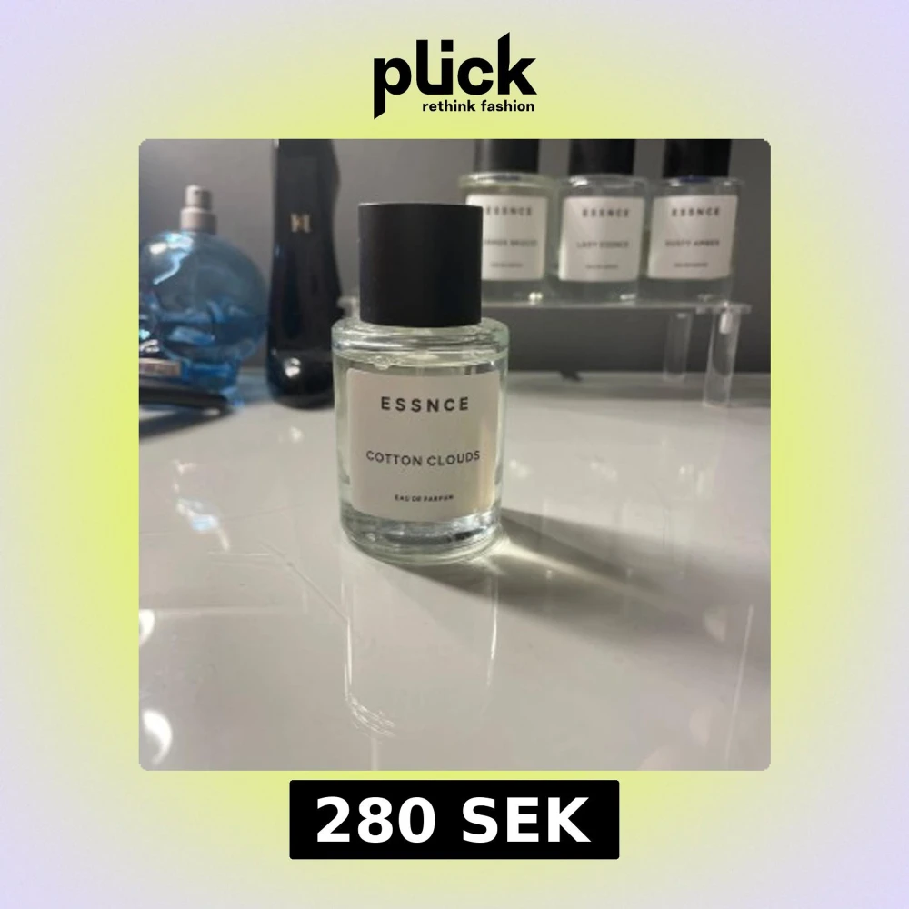 Fräsch parfym från Essnce med namnet Cotton Clouds. Kommer i en stilren, rund glasflaska med svart lock och vit etikett. Doften är lätt och luftig, perfekt för dig som gillar rena och mjuka toner. Flaskan är transparent och minimalistisk i designen.