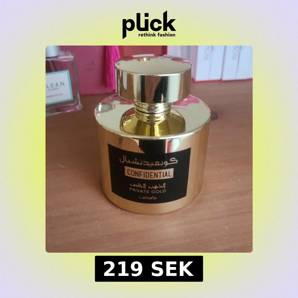 Elegant parfymflaska i glänsande guld med svart etikett. Flaskan har en rund form och en matchande guldfärgad kork. Perfekt för den som söker en lyxig doftupplevelse. Ordinarie pris 260kr.
