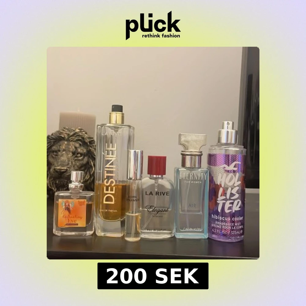 Flera trendiga parfymer och body mist för dig som vill testa olika dofter. Inkluderar märken som La Rive, Calvin Klein och Hollister. Perfekt för dig som gillar att variera din stil. Volym på Hollister: 125 ml.