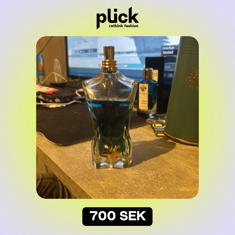 Säljer en flaska Jean Paul Gaultier Le Beau parfym. Flaskan har en unik design i form av en manlig torso i blått glas med en guldig detalj framtill. Parfymen kommer i en elegant grön metallförpackning med guldtext. Perfekt för den som vill ha en stilren och maskulin doft. Pris går att diskuteras😁