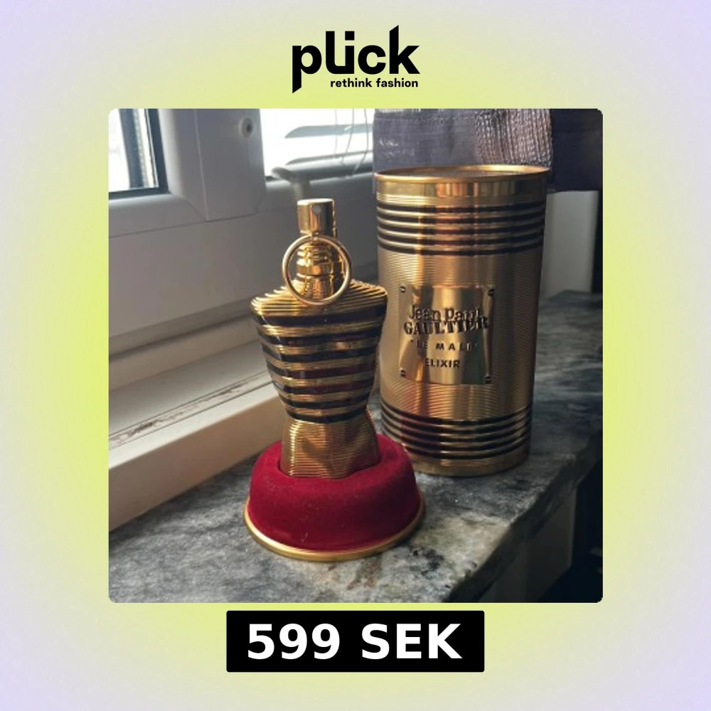 Exklusiv parfym i metallisk guldflaska formad som en manlig torso, med svarta ränder och detaljerad design. Kommer i en lyxig guldfärgad burk med märkets logga och röd sammetsbas. Perfekt för dig som gillar statement-dofter och snygg inredningsdetalj. Den är inte helt ful pris kan deskuteras