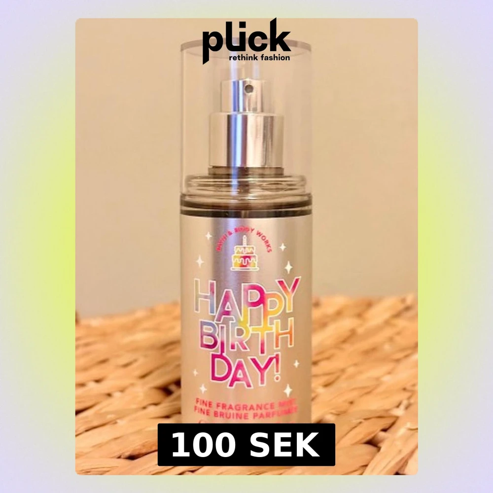 Bath & Body Works Happy Birthday Fine Fragrance Mist, 75 ml. Helt full vilket syns på bild (markerad med svart streck). Givetvis förvarad mörkt och svalt.
