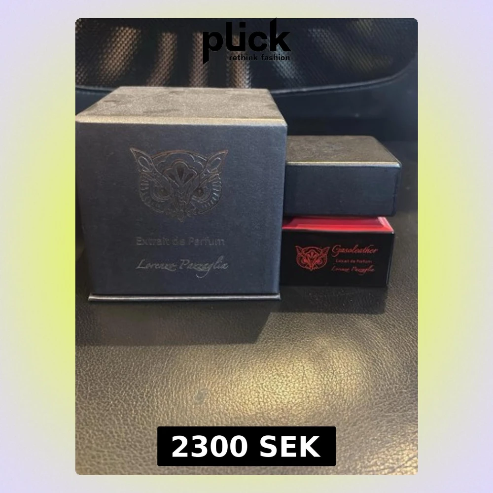 Gasoleather Extrait de Parfum från Lorenzo Pazzaglia i en elegant svart och röd fyrkantig flaska med matchande svart kartong. Flaskan har en stilren design med röd logotyp och text på framsidan. Perfekt för dig som gillar unika och exklusiva dofter. Storlek 75ml och endast testsprutad. Priset är diskuterbart