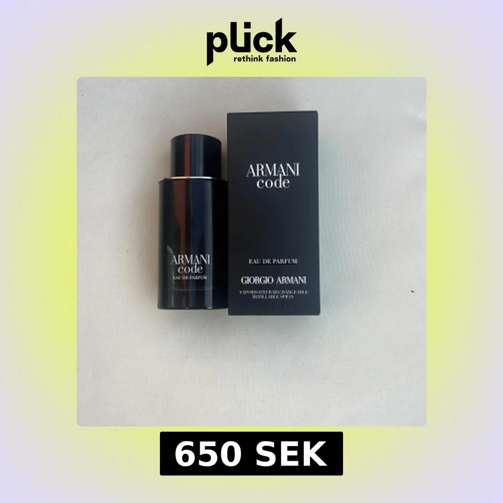 Säljer en elegant och sofistikerad Armani Code Eau de Parfum i en stilren svart flaska. Parfymen kommer i en 75 ml flaska och har en förförisk doft som passar perfekt för speciella tillfällen eller vardaglig användning . Flaskan har ba test spretad en gång !