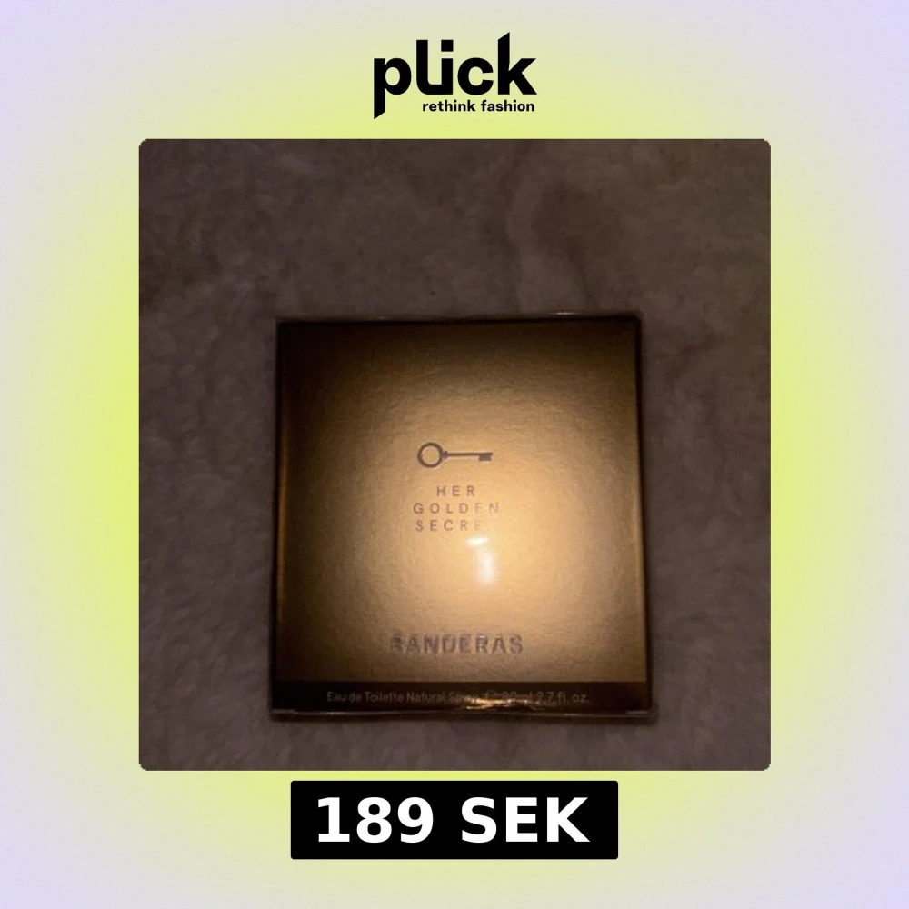 Her Golden Secret från Banderas är en Eau de Toilette i en lyxig, guldig fyrkantig förpackning med elegant nyckelmotiv på framsidan. Förpackningen har en metallisk finish och text i silver. Perfekt för dig som gillar exklusiva och moderna dofter.