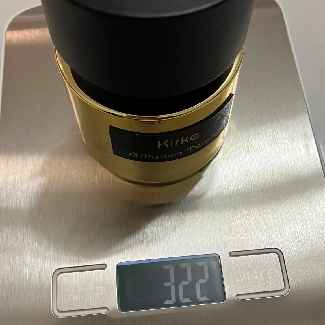 Exklusiv parfym från Tiziana Terenzi i modellen Kirke. Fullflska väger 352gr och min 322gr. Så uppskattar jag mängden på 80ml+