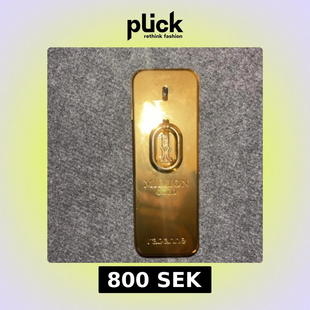 Snygg och lyxig parfymflaska i guld från Paco Rabanne. Flaskan har en rektangulär form med en elegant design och en gyllene färg. Perfekt för den som vill ha en doft med stil och elegans.