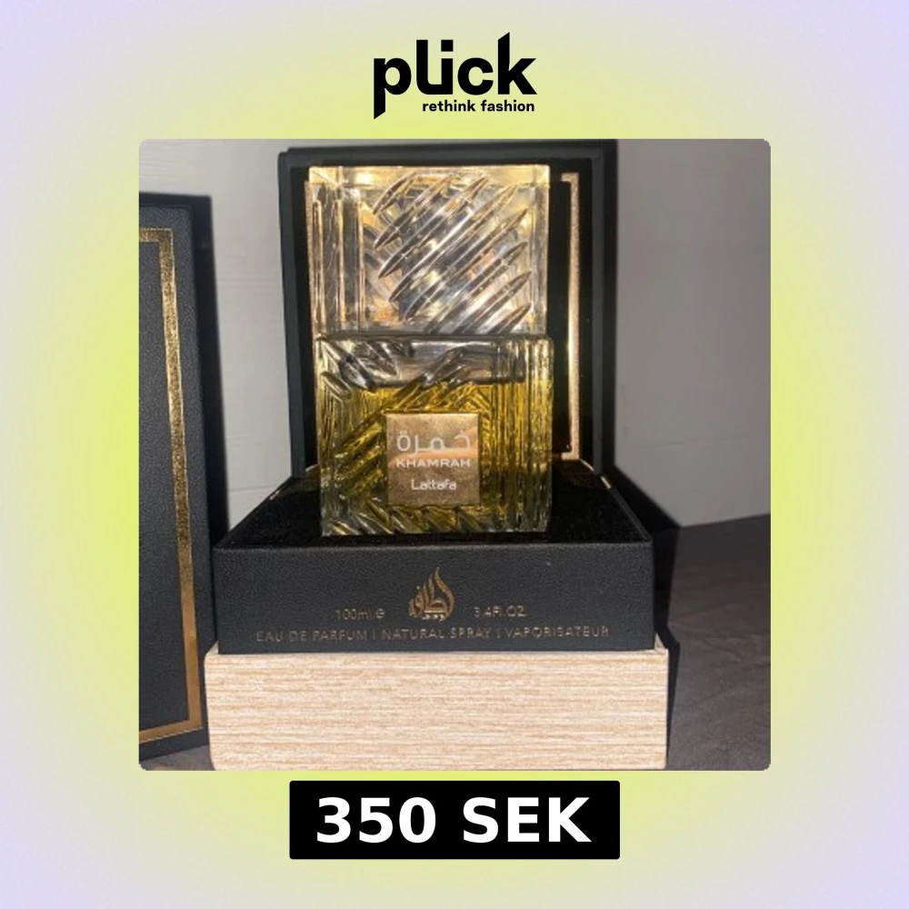 Elegant parfymflaska med ett unikt mönster i glaset. Khamrah från Lattafa är en Eau de Parfum på 100 ml. Flaskan har en fyrkantig form med en gyllene vätska inuti och ett matchande lock. Perfekt för den som söker en lyxig doftupplevelse.(Skriv för lägre pris)