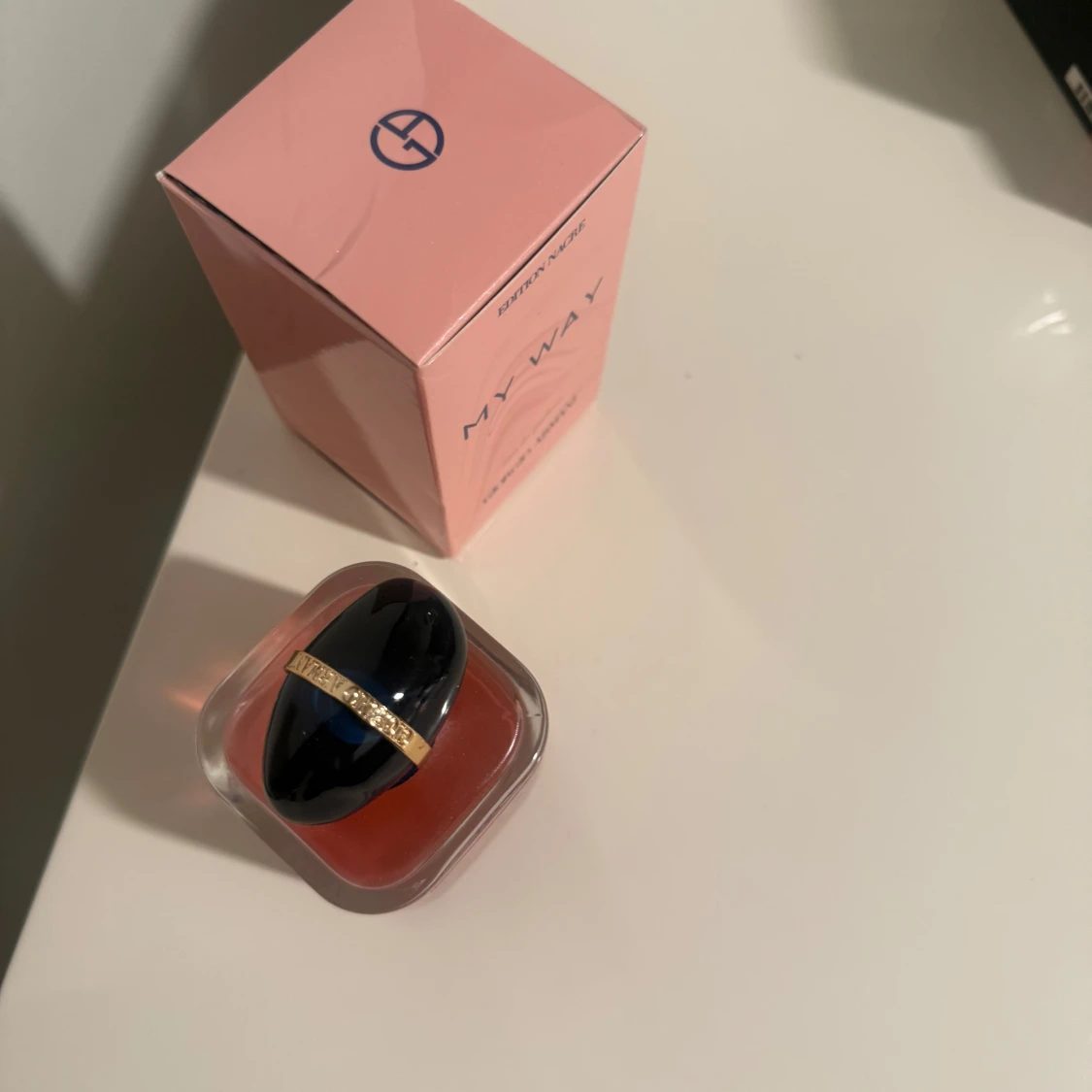 Säljer en lyxig parfym, My Way Edition Nacre från Giorgio Armani. Flaskan är fyrkantig i tjockt glas med rosa doftvätska, svart oval kork med gulddetalj. Kommer i en snygg rosa kartong med elegant design. Perfekt för dig som gillar exklusiva dofter och snygg förpackning.
