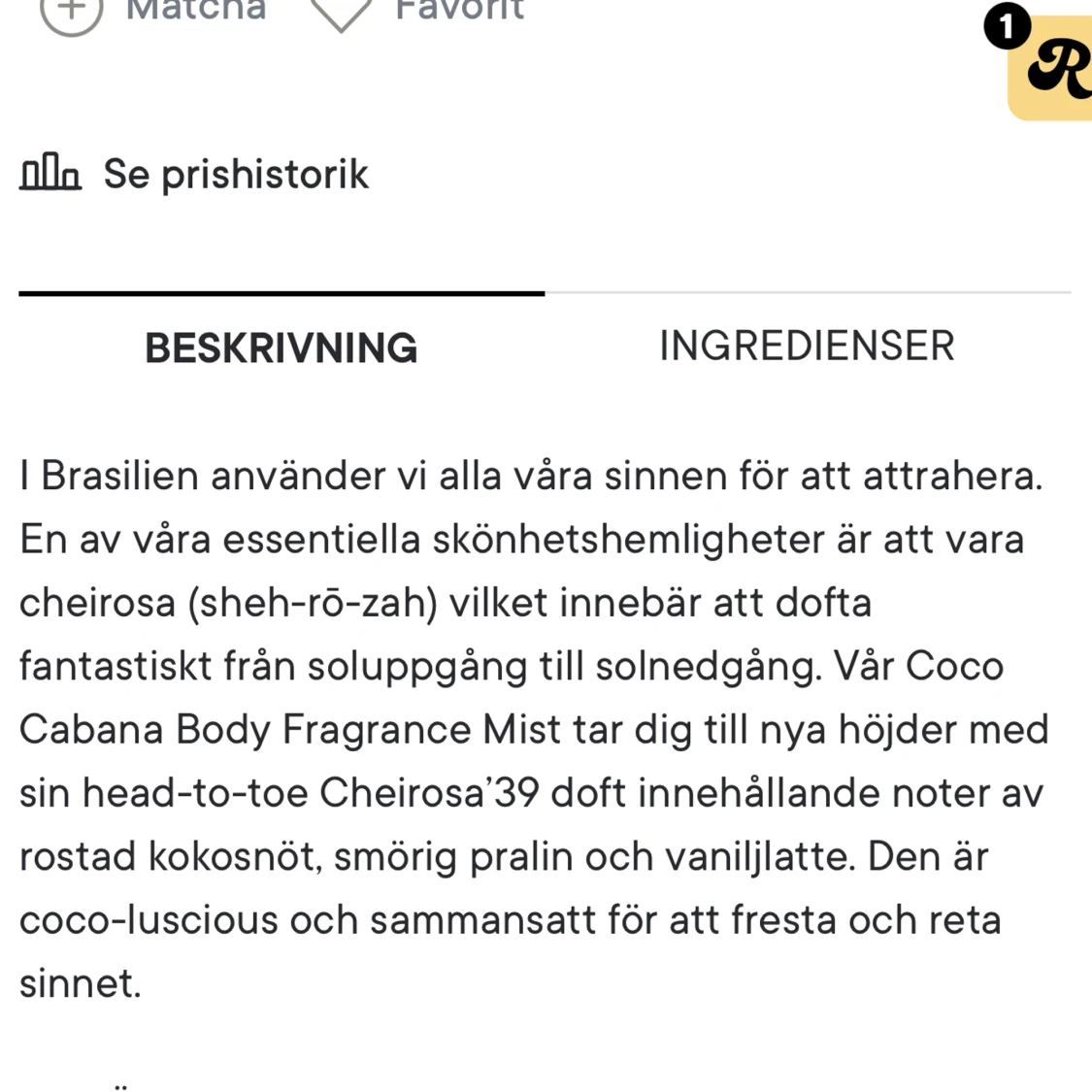 Detta är en bodymist/parfym ifrån sol janerio. Den doftar otroligt mycket kokos (se bild 3) och håller hela dagen. Endast testad 2ggr säljs pågrund av inte riktigt min doft ❤️AMAZING, inget fast pris