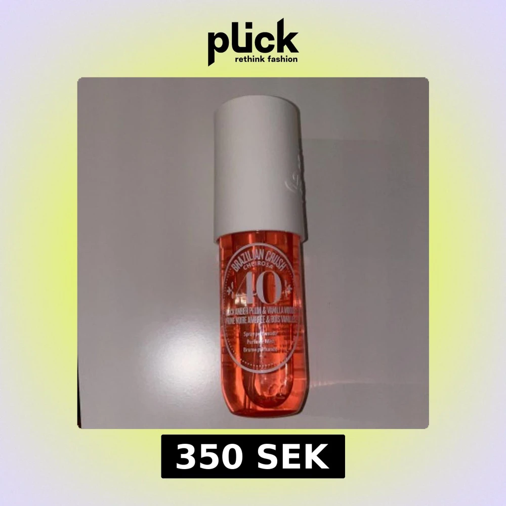 Fräsch och exotisk doftspray från Sol de Janeiro, Brazilian Crush Cheirosa 40. Flaskan är orange med en vit kork och innehåller noter av svart bärnsten och vaniljträ. Perfekt för en tropisk känsla.