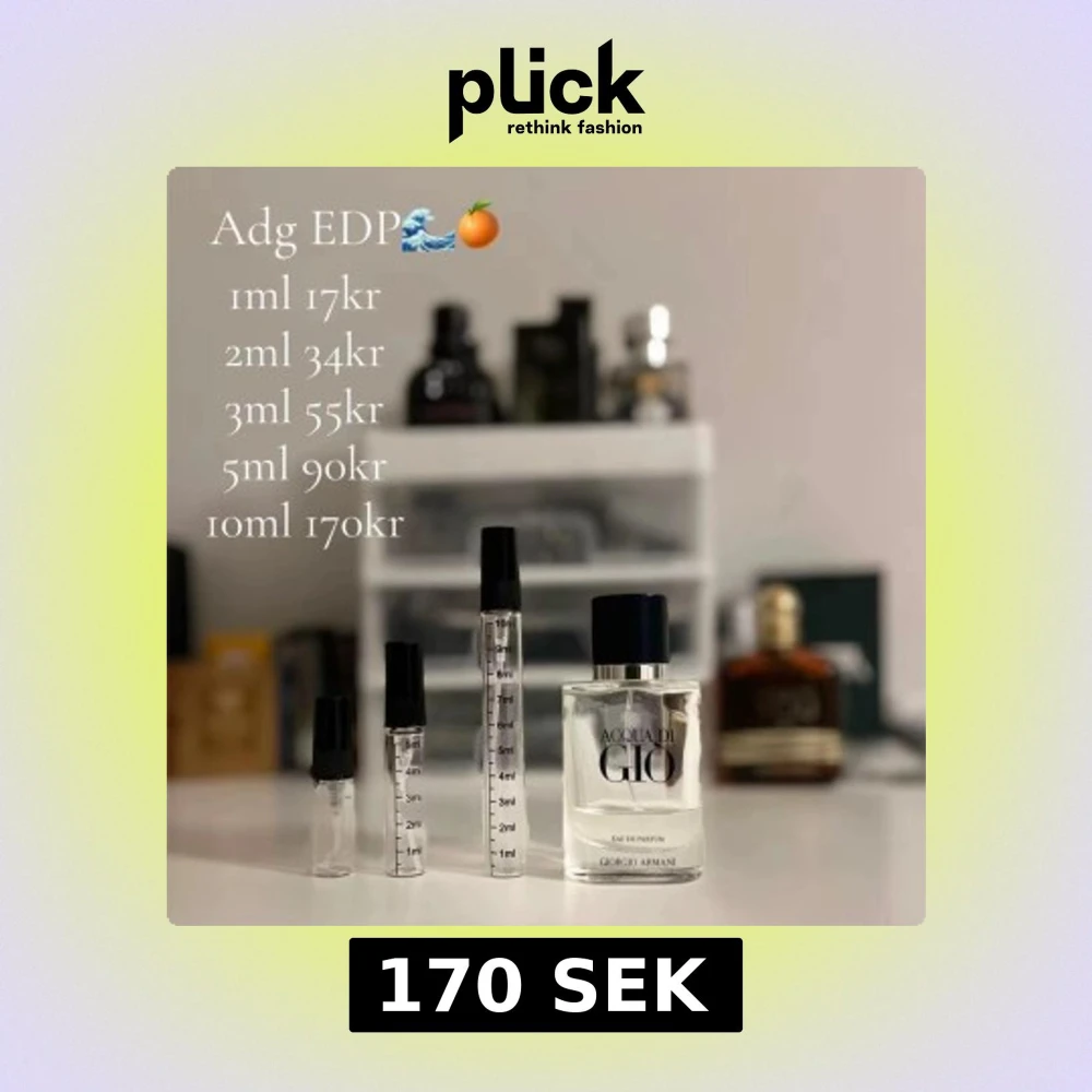 Fräsch Eau de Parfum från Giorgio Armani, säljs i mindre decant-flaskor (1ml, 2ml, 3ml, 5ml, 10ml). Perfekt för dig som vill testa eller ha med på språng. Modern och stilren doft för unga.