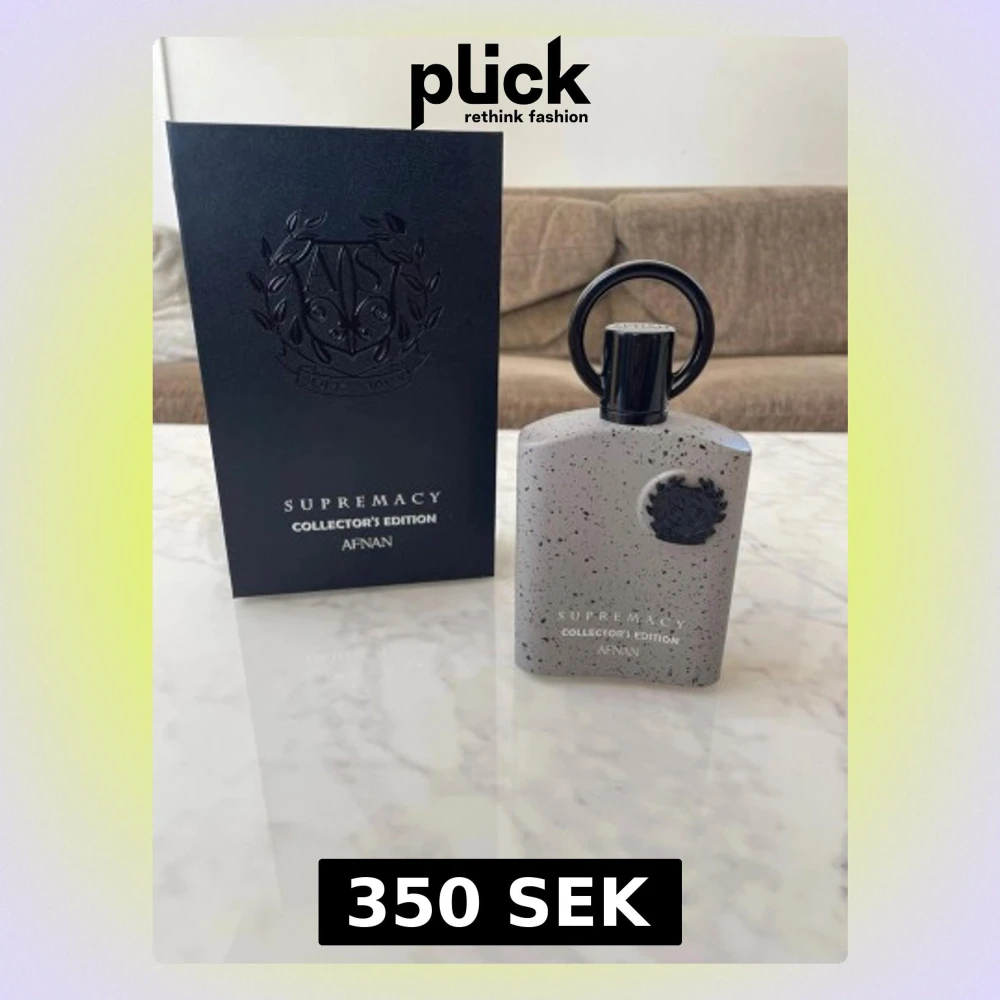 Supremacy Collector's Edition från Afnan är en exklusiv parfym i en grå, stänkmönstrad flaska med svart emblem och stor rund svart kork. Flaskan har en modern och unik design som verkligen sticker ut. Perfekt för dig som vill ha något speciellt i parfymhyllan. 90% kvar av flaskan