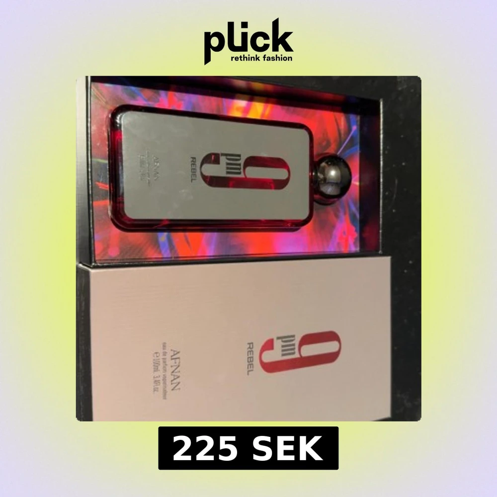 Säljer en Afnan 9PM Rebel parfym i en stilren flaska med röd och svart design. Flaskan har en modern rektangulär form med en rund svart kork. Perfekt för den som vill ha en doft med attityd och stil.
