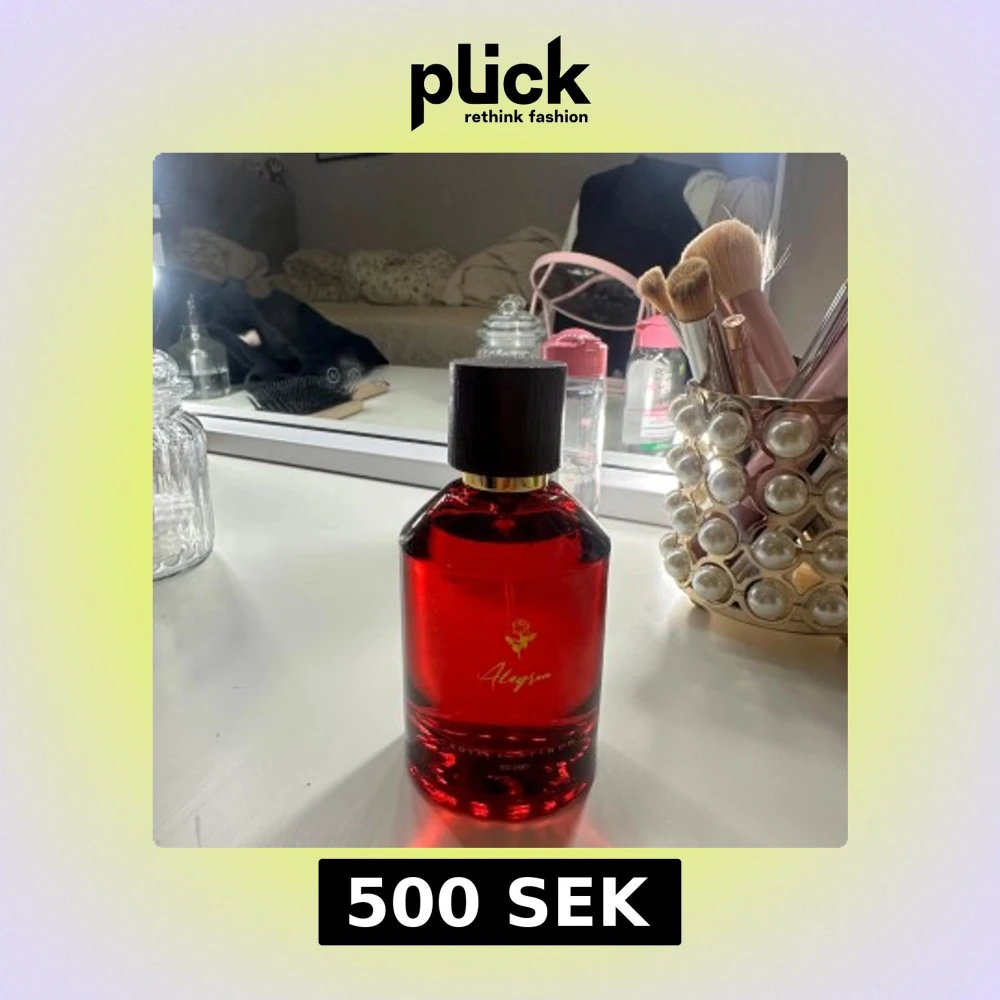 Snygg parfym från Royal Platinum i en djup röd glasflaska med svart kork och gulddetaljer. Flaskan rymmer 100ml och har en elegant design med en liten ros och texten Alegria på framsidan. Perfekt för dig som gillar lyxiga och stilrena dofter.