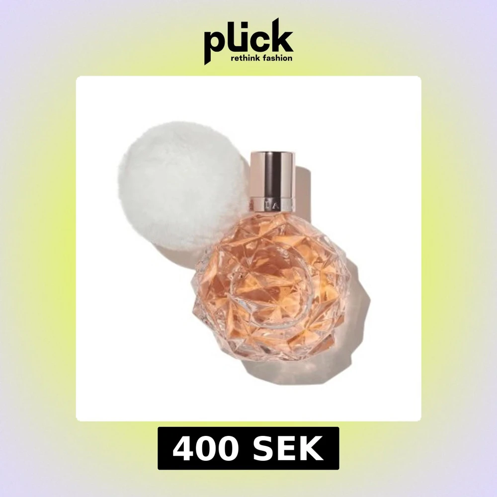 Parfym från Ariana Grande, Ari. Flaskan är keistallformad i genomskinligt glas med persikofärgad vätska och har en silvrig kork. Söt detalj med en fluffig vit pompom som hänger på sidan. Det mesta är kvar då jag bara använt den ett par gånger☺️ (nypris: 540kr)💘Skickar inom 24h!💘