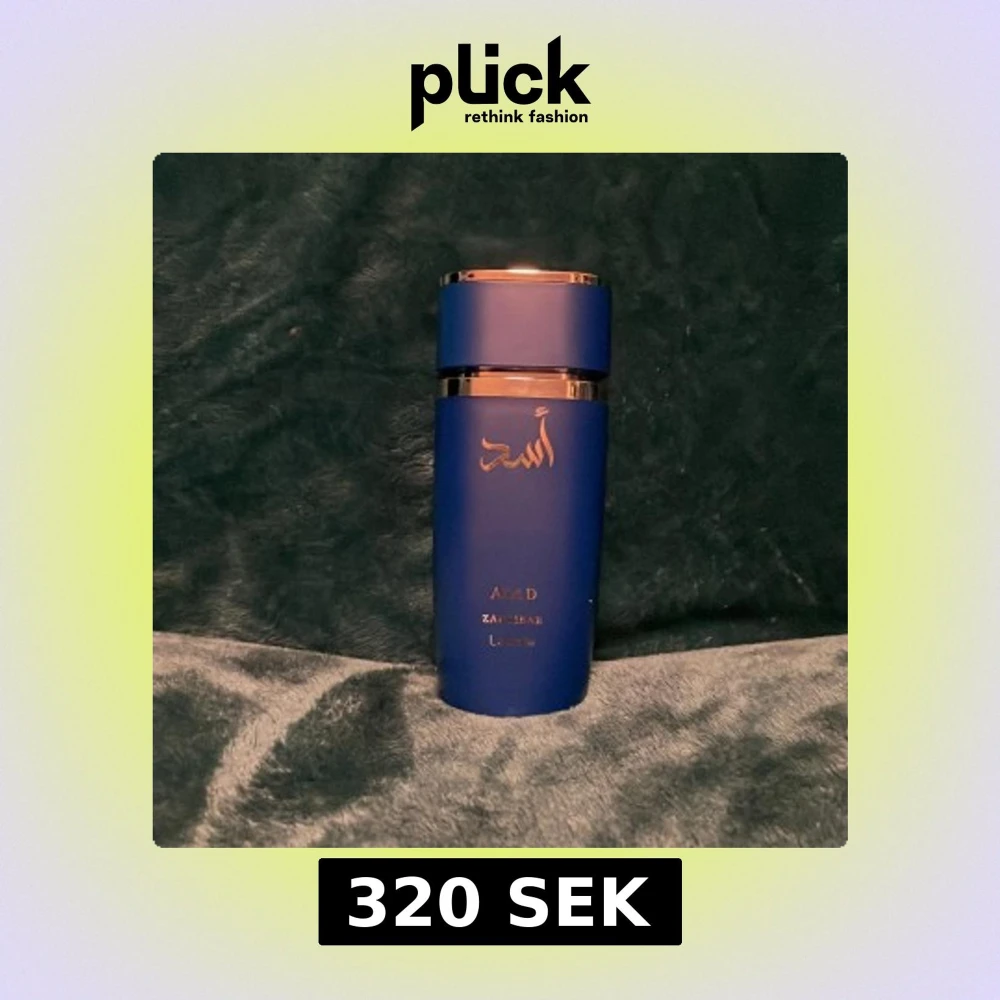 Säljer en Asad parfym från Lattafa i en snygg mattblå flaska med gulddetaljer och arabiska bokstäver. Flaskan är cylinderformad och har en modern, lyxig känsla. Perfekt för dig som gillar unika och stilrena dofter.Mer än halv full och luktar svin bra.