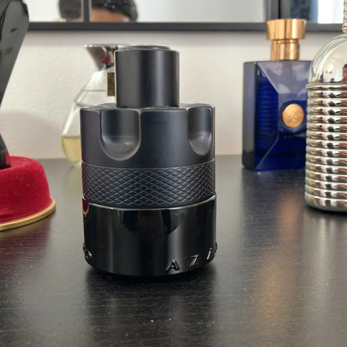 Säljer en Azzaro Wanted parfym i en cool, svart och robust flaska med industriell känsla. Flaskan har en matt och glansig finish med texturerat grepp runt mitten. Perfekt för dig som gillar maskulina och intensiva dofter.
