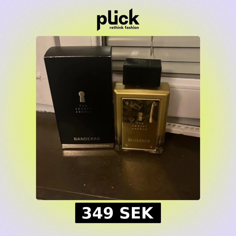 Säljer en elegant parfymflaska av The Secret Absolut från Banderas. Flaskan har en lyxig guldig design med en svart kork och kommer i en stilren svart förpackning. Perfekt för den som vill ha en sofistikerad doftupplevelse. 98-100 ml kvar har bara sprayat ungefär 2-5 gånger. Köpt för ungefär 600 spänn. Priset kan diskuteras Den var bara inte min favorit