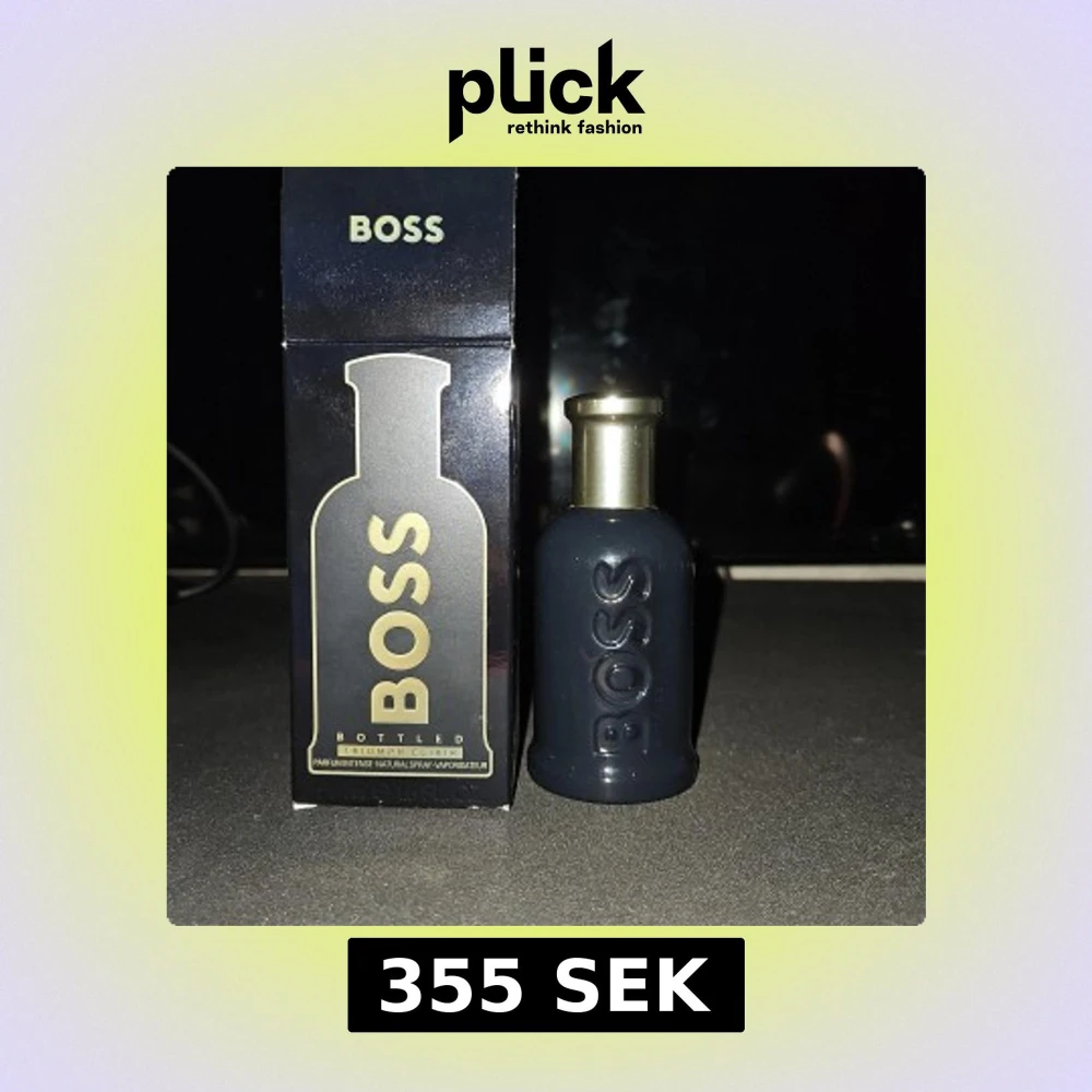 Boss Bottled Triumph Elixir, 50 ml, tillverkad i Spanien. Toppnoter av vetiver, hjärtnoter av patchouli och basnoter av labdanum. Väldigt maskulin doft, ca 45ml kvar I flaskan