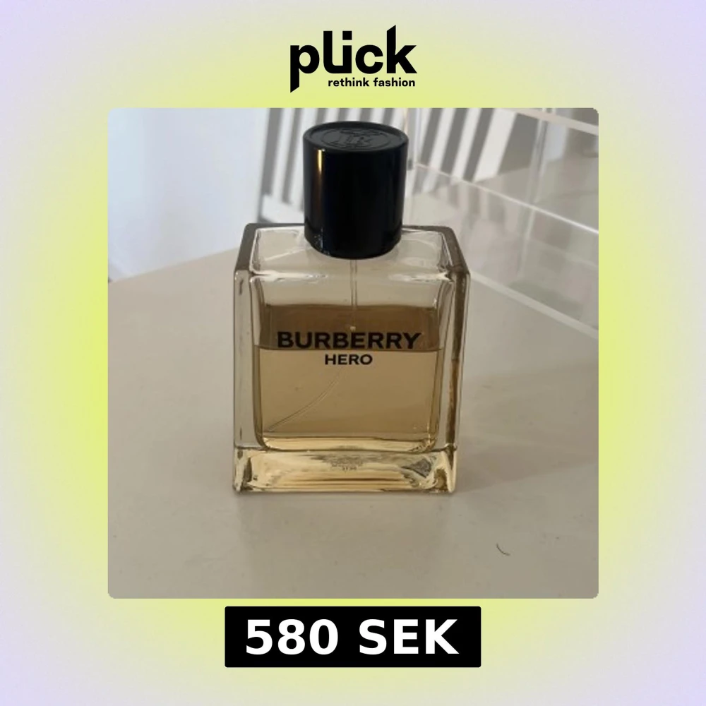 Burberry Hero Eau de Toilette i en stilren, fyrkantig glasflaska med svart plastkork. Flaskan rymmer 100 ml och har en ljusgul vätska. Märkets logga syns tydligt på framsidan. Perfekt för dig som gillar klassiska och moderna dofter.