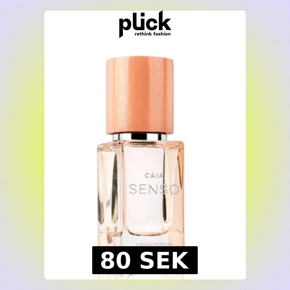 CAIA SENSO Eau de Parfum kommer i en elegant, transparent glasflaska med persikofärgat lock. Doften har toppnoter av mandarin, kryddor, röda vinbär och gröna toner, hjärtnoter av plommon, apelsinblomma, fresia och ros samt basnoter av torr amber, patchouli och mysk. Lite av den är andvänd men inyr mycket