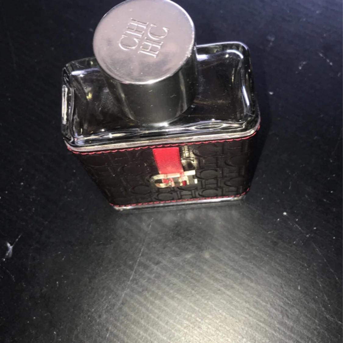 Snygg CH Men parfym från Carolina Herrera i en stilren glasflaska med mörkbrunt läderfodral, präglat med CH-loggor och en röd detalj framtill. Silverfärgad kork med CH-gravyr. Maskulin och elegant design som sticker ut i badrumshyllan. Med en väldigt stark och manlig doft.
