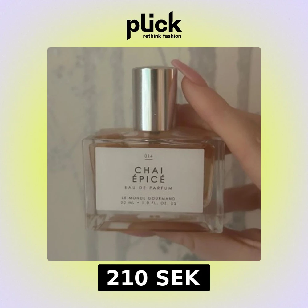 Chai Épicé Eau de Parfum från Le Monde Gourmand, 30 ml. En stilren parfym med modern vibe, perfekt för dig som vill sticka ut med något unikt och trendigt. Köpt på sephora, bara testad. Toppnoter: Viol, fikon, sött äpple, kanelstång, krossad ingefära Hjärtnoter: Varm bärnsten, pepparkaka, kardemummakapslar Basnoter: Ljusa träslag, krämig vanilj, karamelliserad mysk
