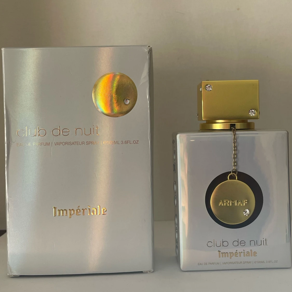 Club de nuit imperiale armaf Top notes are Litchi, Bergamot and Nutmeg; middle notes are Turkish Rose, Vanilla, Musk and Peony; base notes are Vanilla, Incense, Cashmeran and Cedar.105 ml se sista bild ca 100ml kvar. En väldigt feminin doft. Påminner om delina exlusif fast mer pudrig ros. Kan också vara intresserad av byten