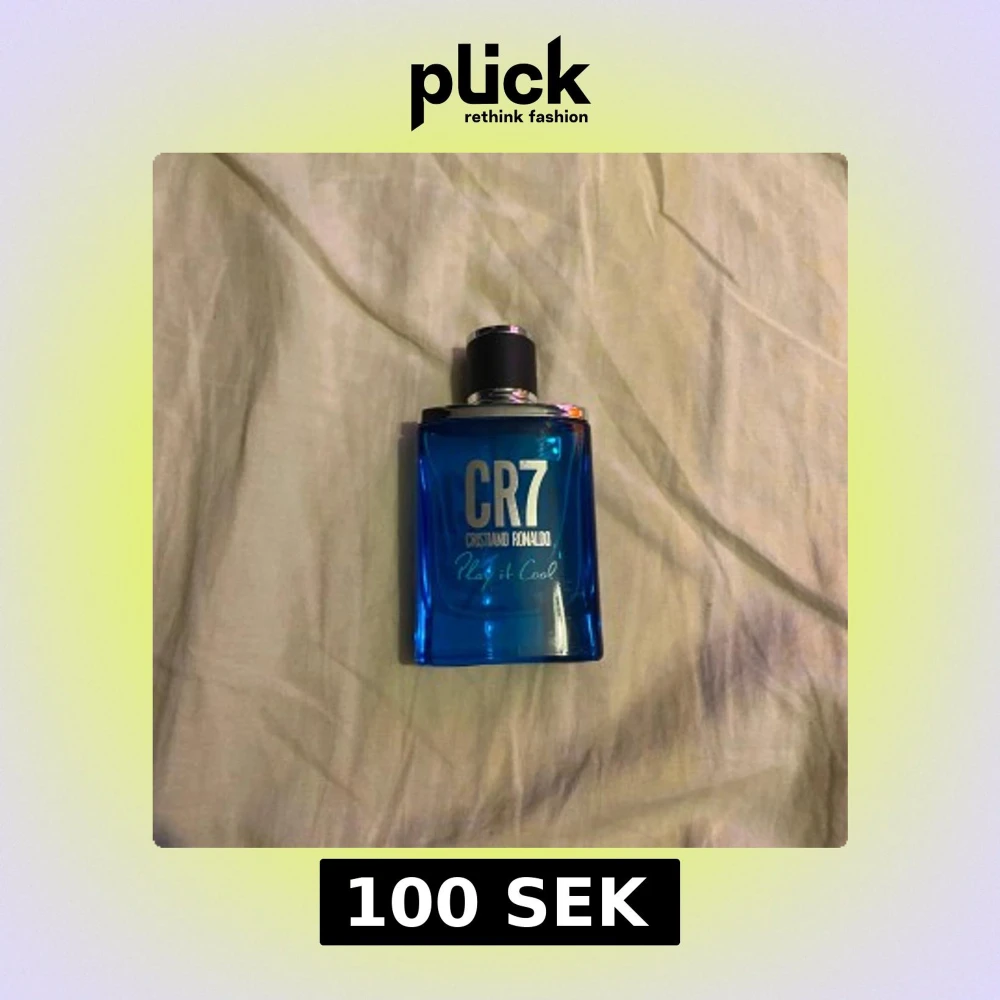 Snygg blå flaska med CR7 Play It Cool parfym från Cristiano Ronaldo. Det är en fräsch och lite tvålig doft som funkar perfekt på sommaren(pris går att diskutera)