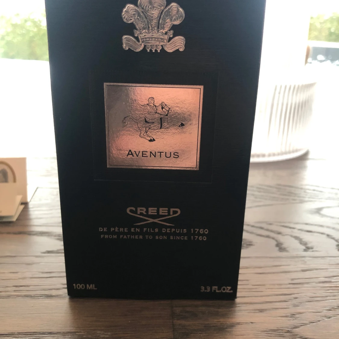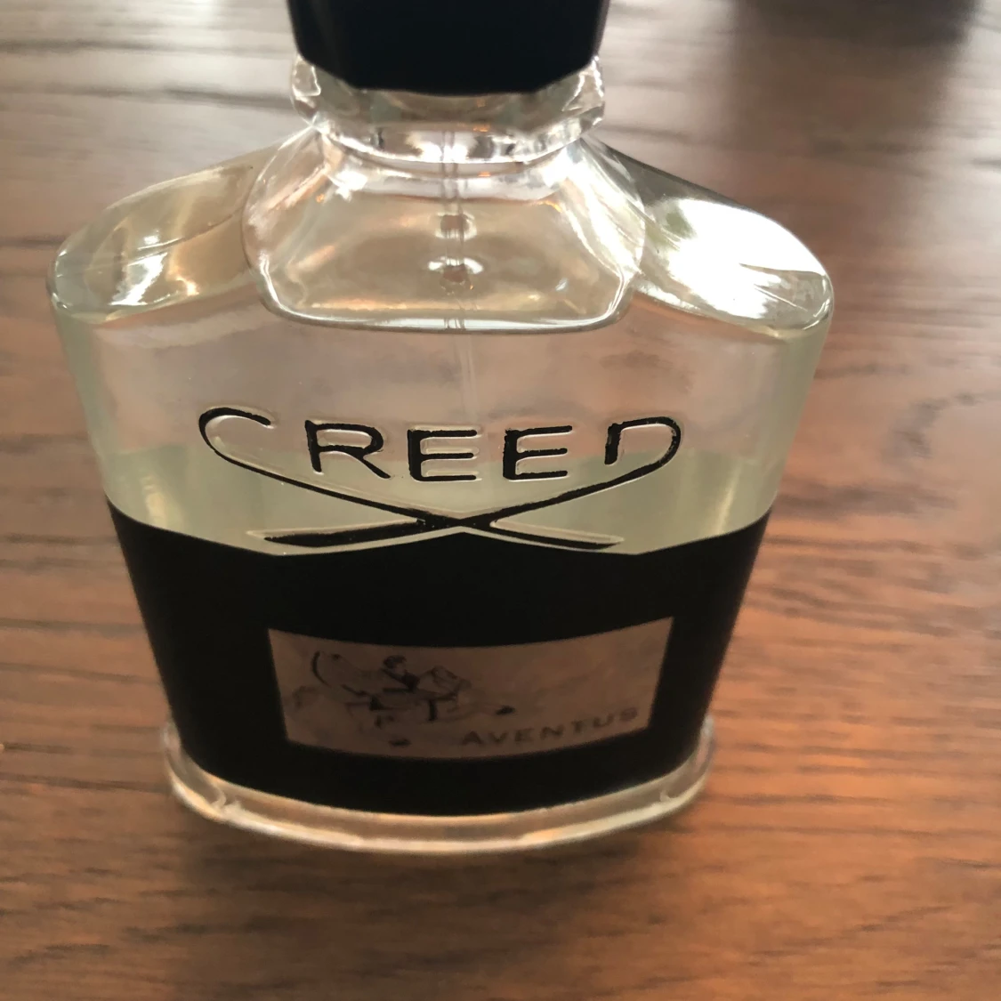 Exklusiv Creed Aventus parfym i en elegant glasflaska med svart detaljer och en stilren etikett. Flaskan rymmer 100 ml av denna ikoniska doft, känd för sin unika och kraftfulla karaktär. Förpackningen är lyxig med en svart kartong och silverdetaljer. Skriv innan ni köper