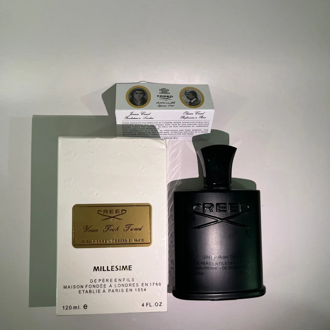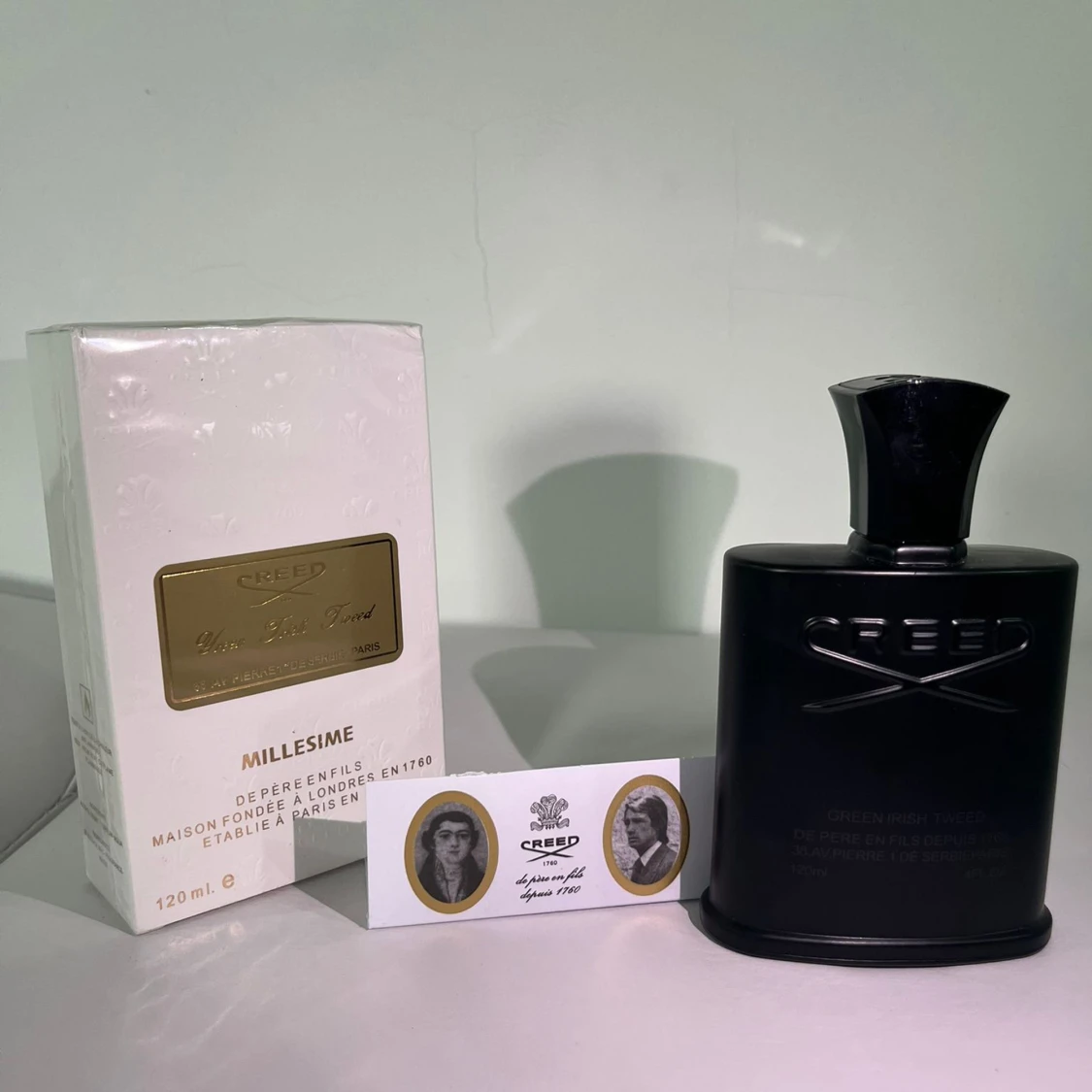 Lyxig parfym från Creed, Green Irish Tweed, 120ml. Flaskan är mattsvart med elegant form och tydlig logga. Kommer med vit kartong med guldfärgad detalj och äkthetskort. En klassiker med fräsch, grön och maskulin doft.