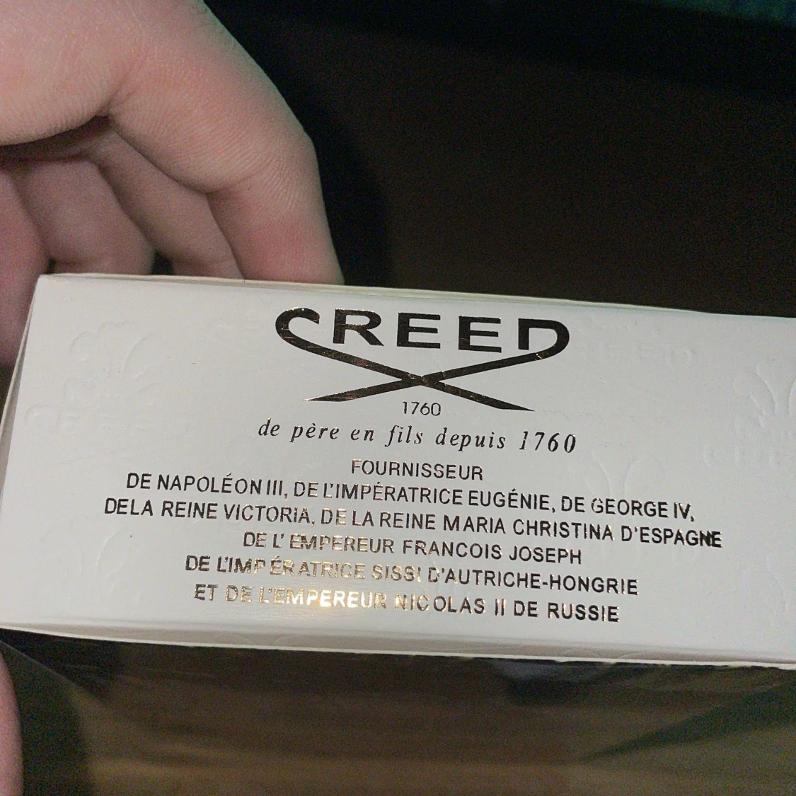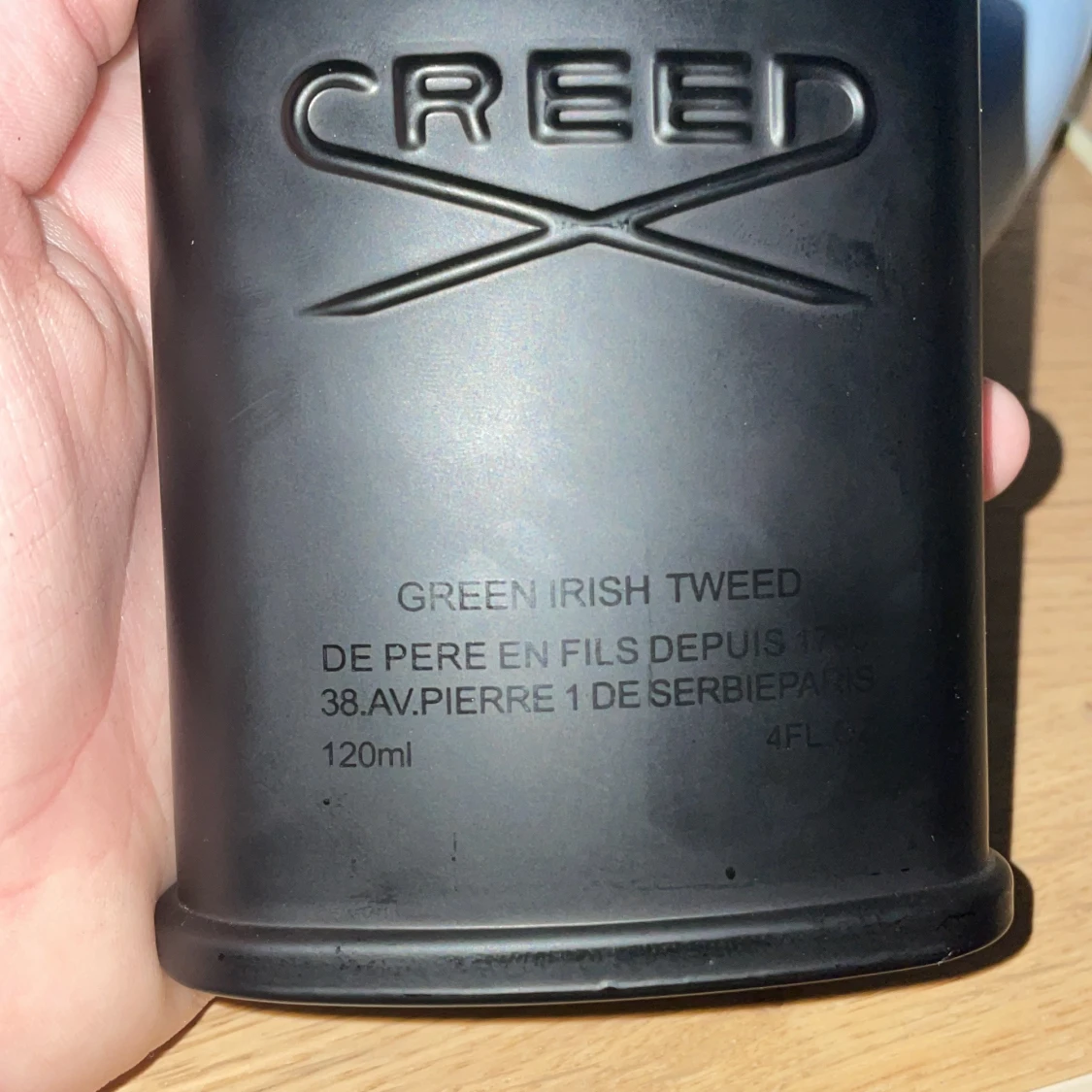 Exklusiv parfym från Creed, Green Irish Tweed, i en elegant svart flaska med 120 ml innehåll. Flaskan har en stilren design med Creed-logotypen präglad på framsidan och ett dekorativt lock. Doften är känd för sina fräscha och naturliga toner.