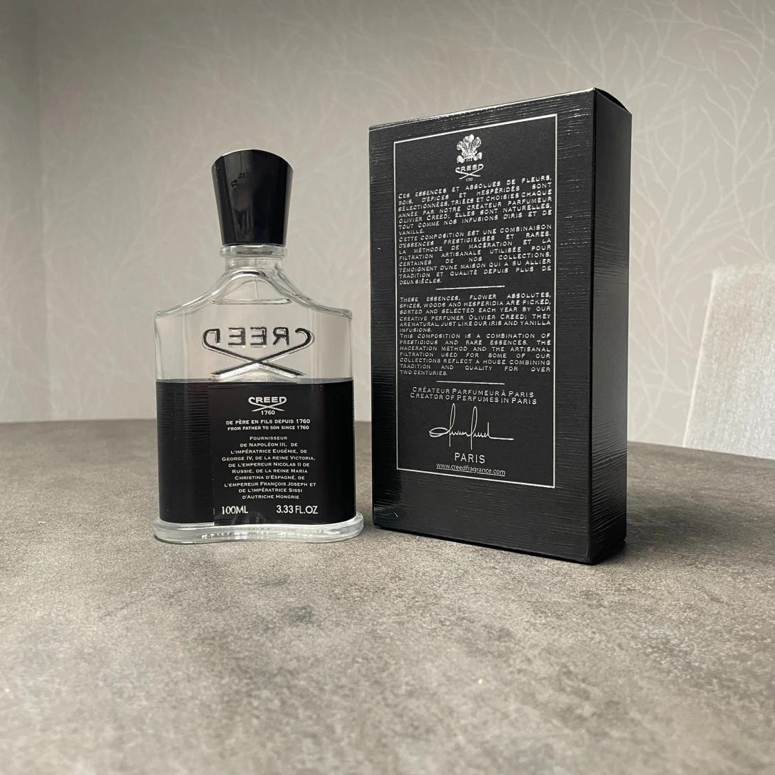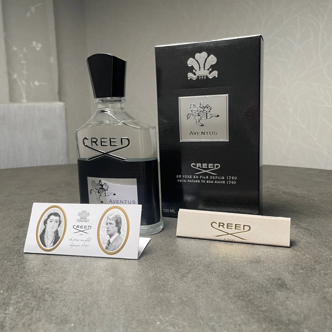 ‼️Akta er för f@ke parfymer | skriv gärna om ni vill ha bevis på att den är äkta💛 | nytt pris 3400kr - 4200kr | mitt pris - 1900kr Lyxig parfym från Creed, Aventus, i en elegant genomskinlig glasflaska med svart och silverdetaljer. Flaskan rymmer 100 ml och har en svart kork. Medföljer gör originalkartong i svart med silverlogga och emblem samt informationskort.