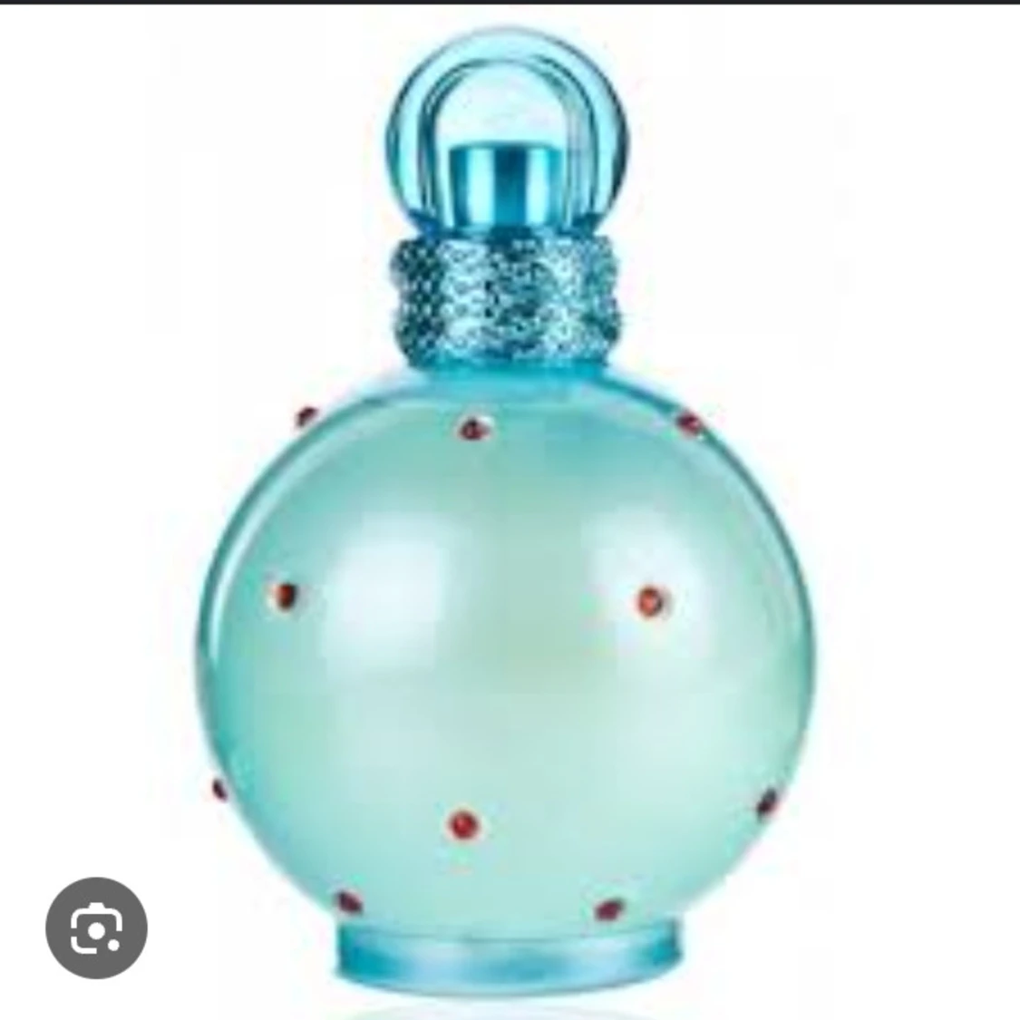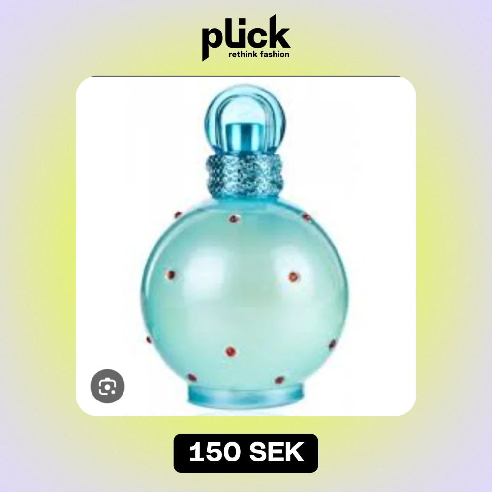 Säljer en cool parfym i en rund, ljusblå flaska med röda stenar. Flaskan har en glittrig blå ring runt halsen och ett matchande blått lock. Perfekt för att piffa upp din parfymkollektion! 💙 Nästan helt full.