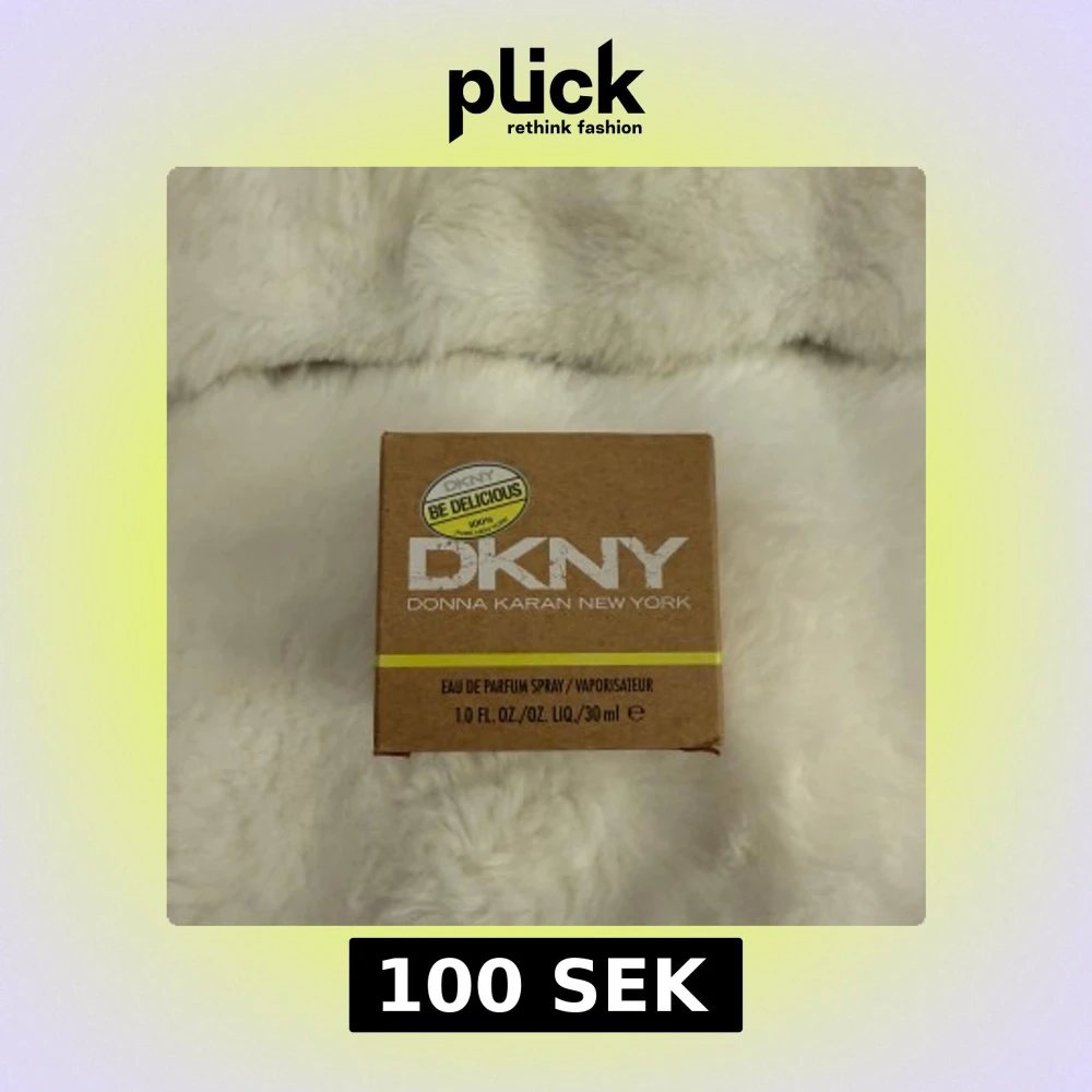 Fräsch och fruktig parfym från DKNY, Be Delicious, i en snygg grön och silverfärgad flaska med rund form. Kommer i originalkartong i brunt papper. Innehåller 30 ml eau de parfum spray.