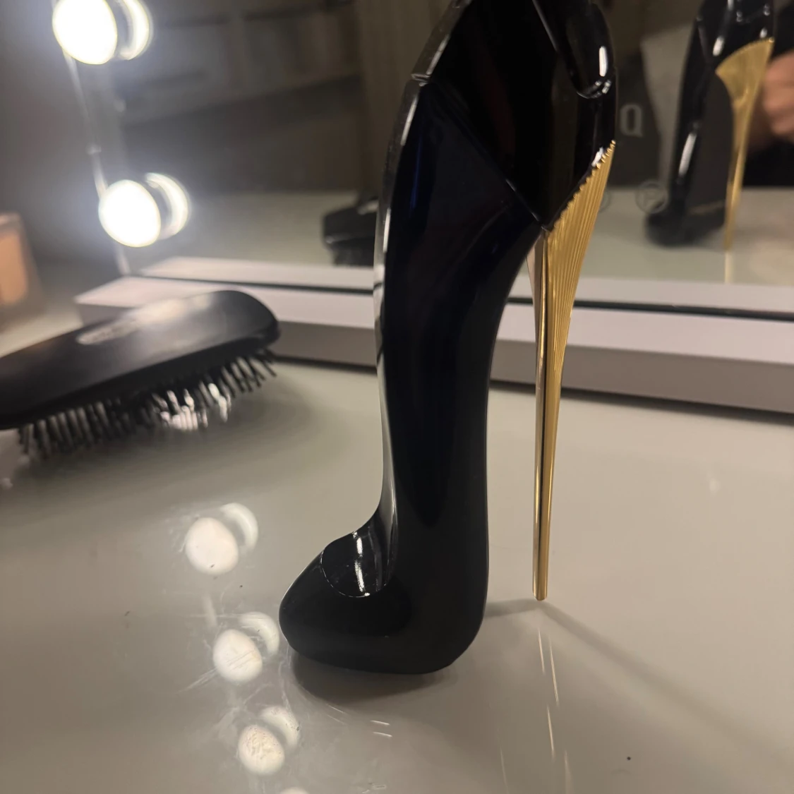 Snygg parfym från Carolina Herrera i en unik klackformad flaska. Perfekt för dig som vill sticka ut och addera en cool detalj till din samling. Märket syns tydligt på flaskan. Nästan oanvänd.