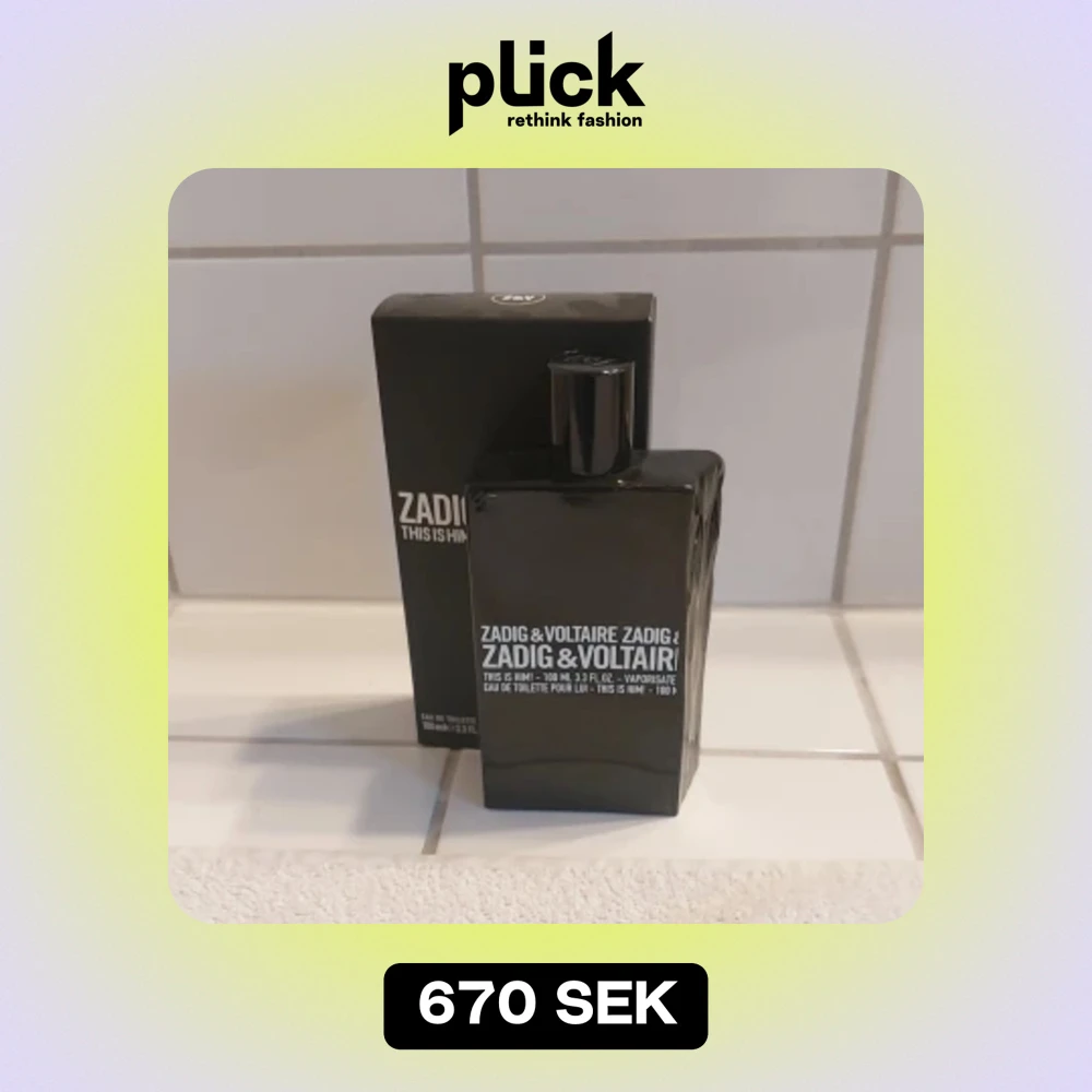 Säljer en cool och stilren parfymflaska från Zadig & Voltaire. Flaskan är svart och har en minimalistisk design med vit text. Det är en Eau de Toilette för herrar, perfekt för den som vill ha en modern och maskulin doft. Det är ca 90-93 ml kvar.
