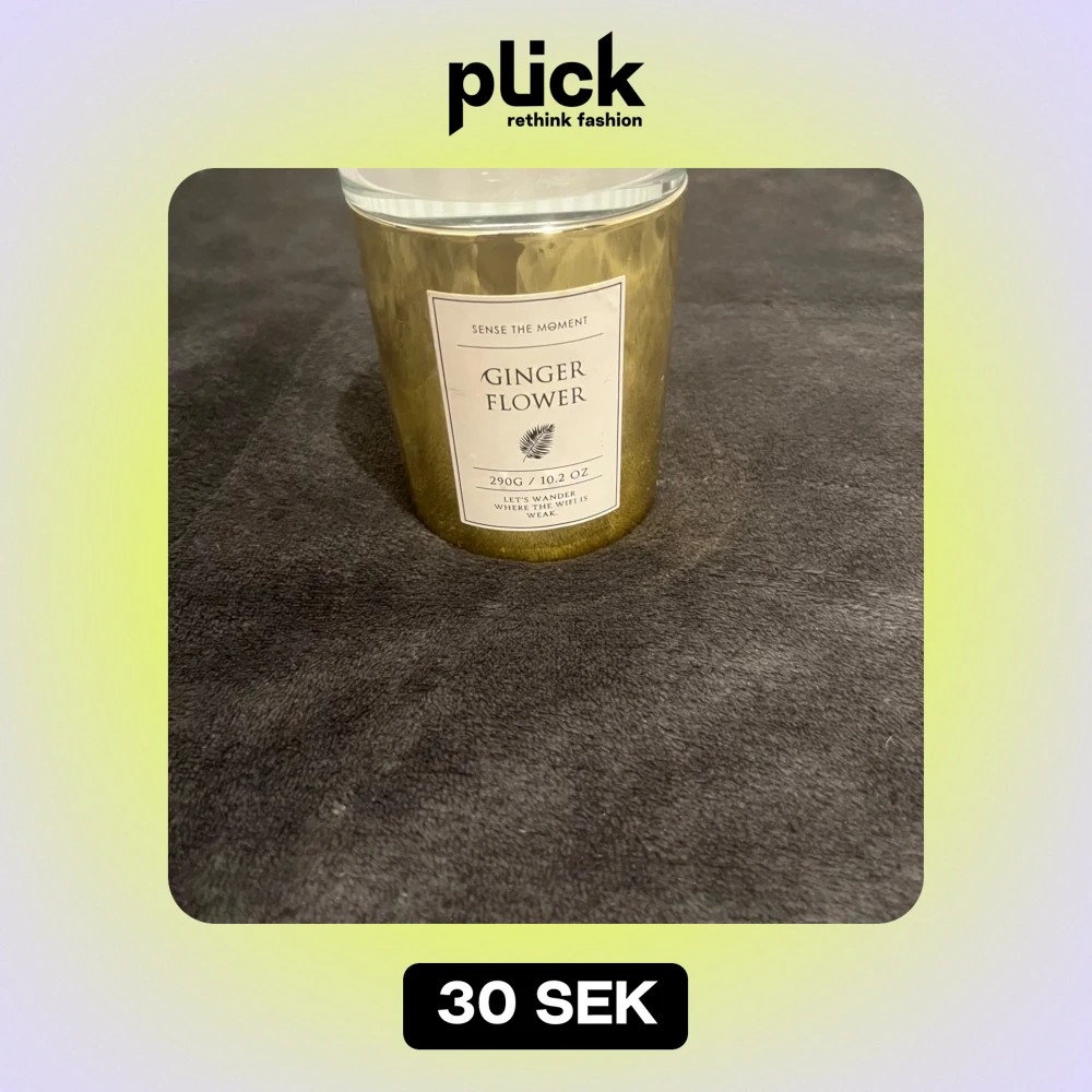 Säljer ett lyxigt doftljus från Sense the Moment med doften Ginger Flower. Ljuset väger 290g och kommer i en elegant guldfärgad behållare. Perfekt för att skapa en mysig stämning hemma. 🕯️