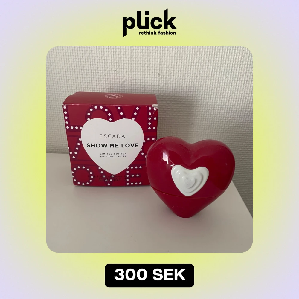 Säljer en 30ml Escada Show Me Love parfym i en hjärtformad flaska. Doften är söt och fruktig med inslag av jasmin, mandel och vanilj. Knappt använd då jag köpte fel doft, skulle säga att den är full till 90%💗💗 (pris kan diskuteras)