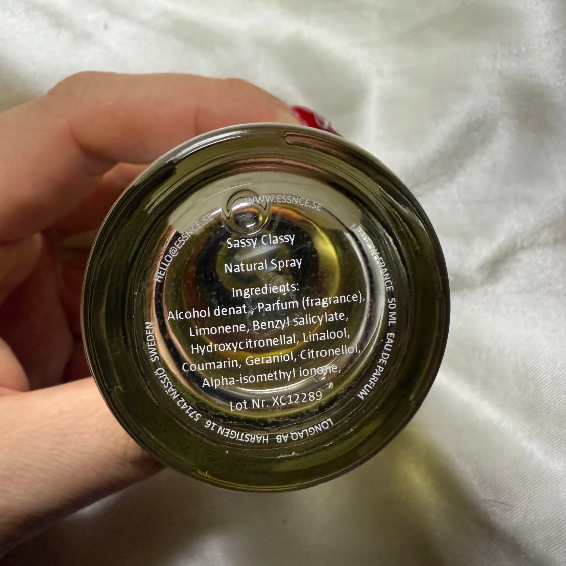 Sassy Classy från ESSNCE. Endast testad Beskrivning från Essnces egna hemsida: Doften öppnar med fräscha toppnoter av lavendel, mandarin och citrusfrukter som ger en klar och uppfriskande känsla. Apelsinblomma, jasmin och rosépeppar i hjärtat ger doften en mjukt blommig men ändå kryddig karaktär, vilket skapar en förförisk och sofistikerad ton. Basen av mysk, cederträ, vanilj och amber tillför värme och djup, vilket gör att doften känns både elegant och sensuell på samma gång.