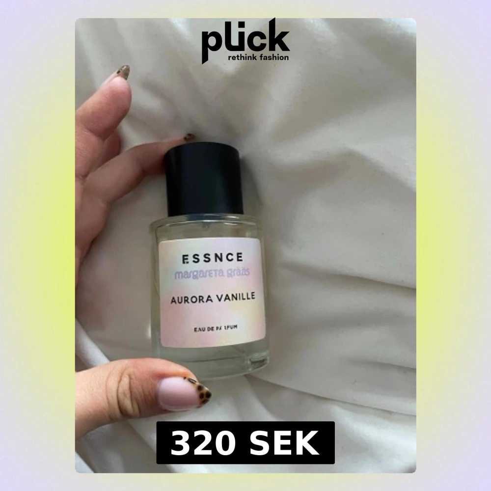 Aurora Vanille från Essnce x Margareta Grääs är en Eau de Parfum i en rund, genomskinlig glasflaska med svart lock. Doften har en söt och mjuk vaniljkaraktär. Flaskan har en stilren etikett i ljusa pastellfärger.