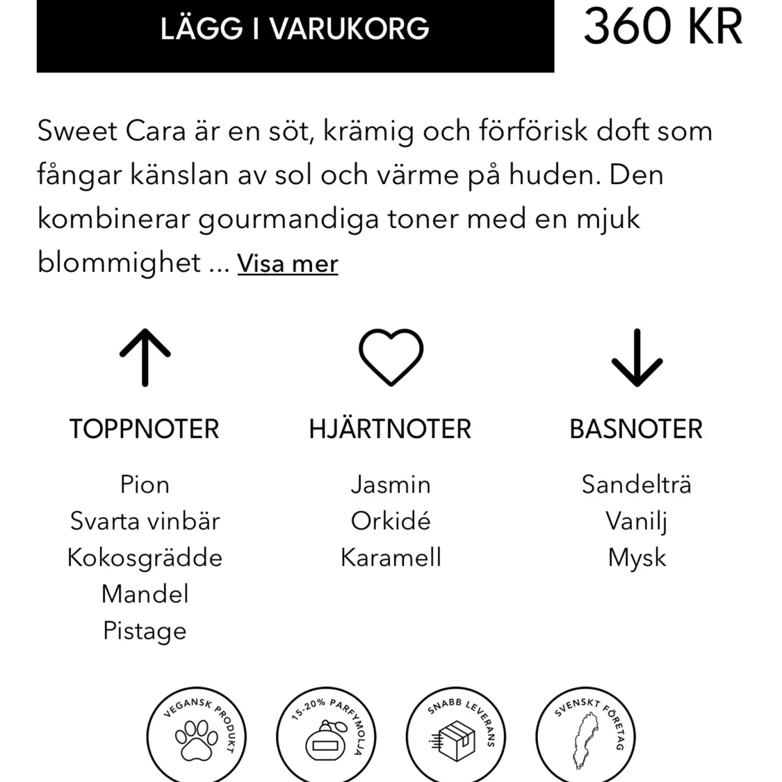 Säljer sweet cara ifrån essnce då den inte kommer till användning. Endast använd fåtal gånger och nästan full flaska. Doftar som sol del Janeiro 62