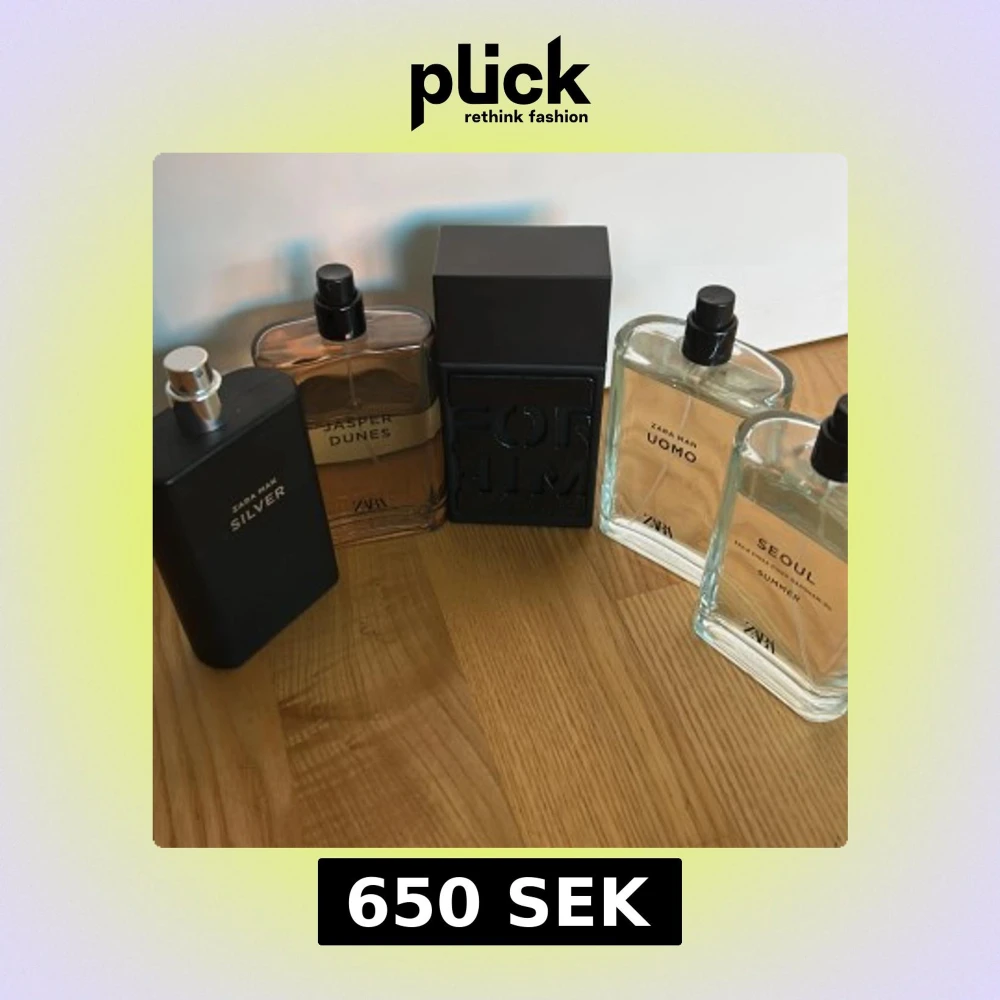 Samling med fem olika herrparfymer från Zara: Silver, Jasper Dunes, Forum For Him, Uomo och Seoul Summer. Perfekt för dig som vill testa flera stilar och hitta din favorit. Modern design och populära dofter för unga.
