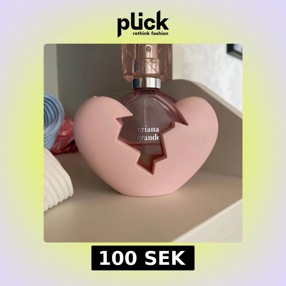 Säljer en Ariana Grande parfym i en unik hjärtformad flaska med rosa detaljer. Flaskan har en trasigt hjärta-design och är tillverkad i glas och plast. Parfymen rymmer 30 ml och har en elegant, feminin look med genomskinlig rosa färg. Ca 15 ml kvar. Säljer pga att doften inte passar mig.