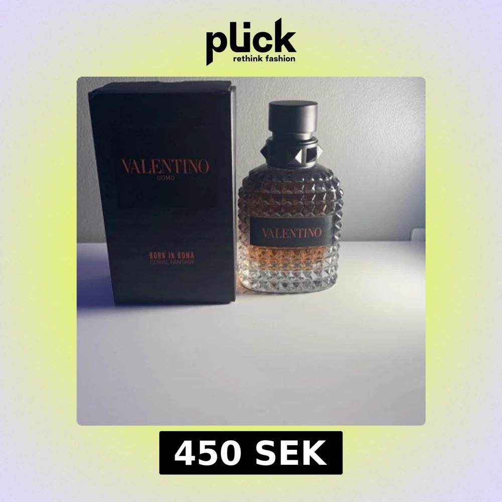 Exklusiv herrparfym från Valentino, Born In Roma Coral Fantasy. Flaskan är 50 ml och har en lyxig, noppig glasdesign med svart etikett och orange text. Doften är modern och elegant, perfekt för dig som vill sticka ut. Drygt 45 ml kvar bytte med min brorsa och han köper allt från kicks så 100% äkta och priset kan diskuteras