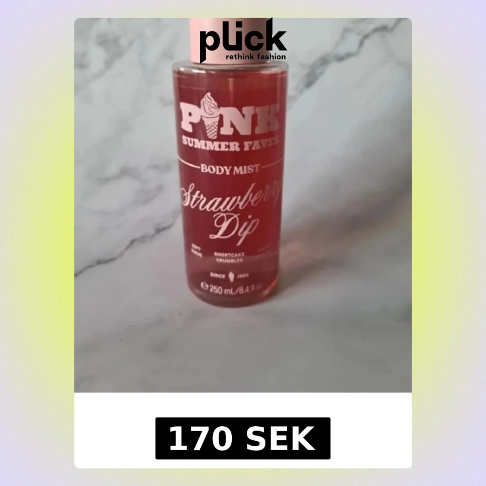 Fräsch body mist från PINK i doften Strawberry dip och har inslag av jordgubb och shortcake crumbles. Perfekt för dig som gillar söta och somriga dofter. Helt ny och oanvänd